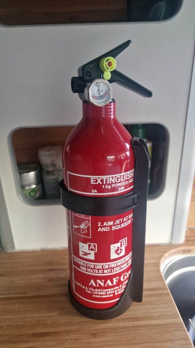 - Fire Extinguisher: Located where we can grab it quickly if we ever need it.